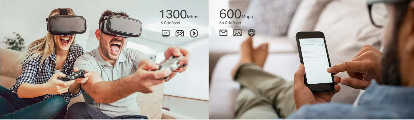 Archer C80 ofrece Wi-Fi doméstico de alto rendimiento y asequible con velocidades totales de hasta 1900 Mbps. Maneje tareas simples como enviar correos electrónicos o navegar por la web en la banda de 2.4 GHz y tareas intensivas en ancho de banda como juegos en línea o transmisión 4K / 8K UHD en la banda de 5 GHz, todo sin demoras.