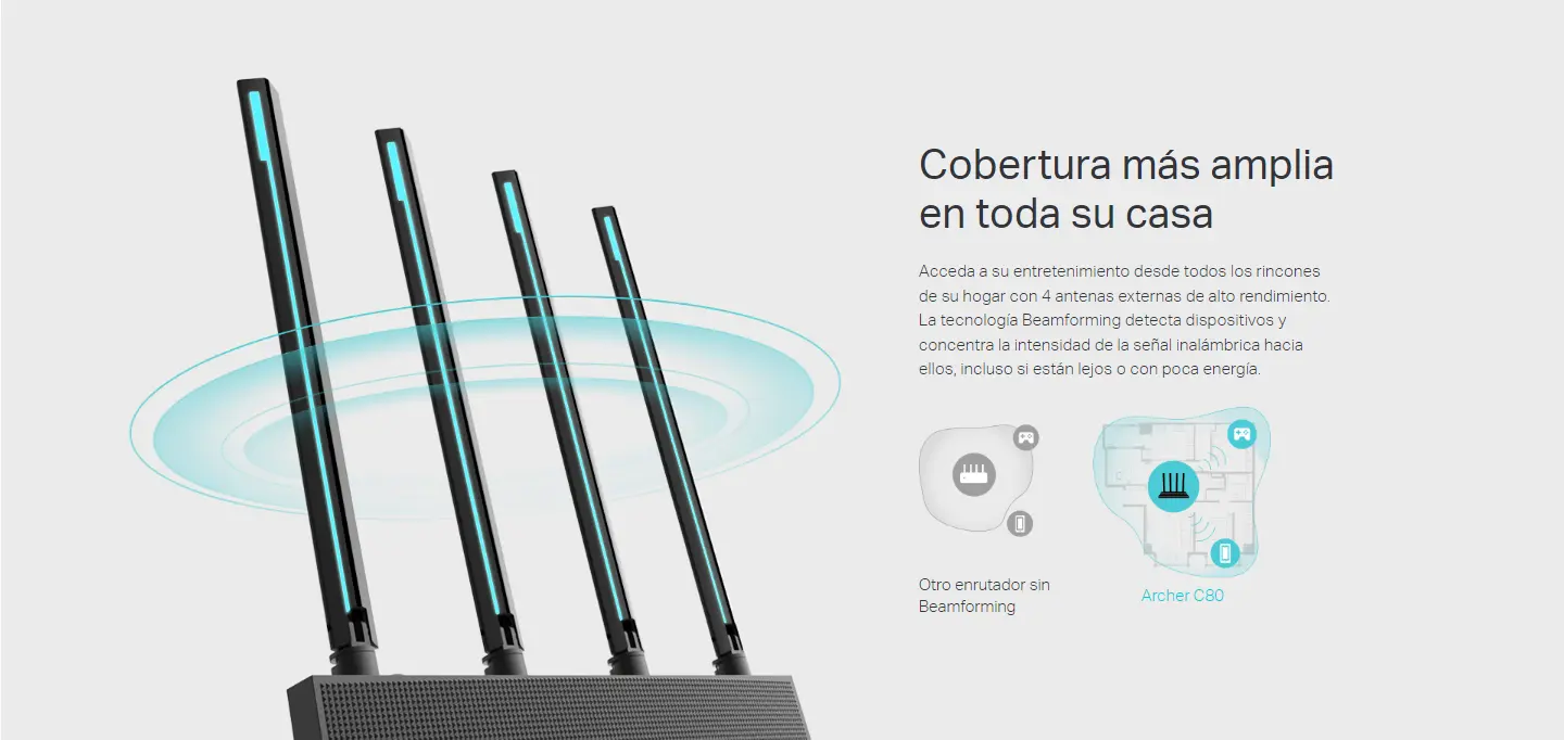 - Internet en toda la casa. La tecnología Beamforming lleva la señal de internet más lejos concentrando la señal en los dispositivos.