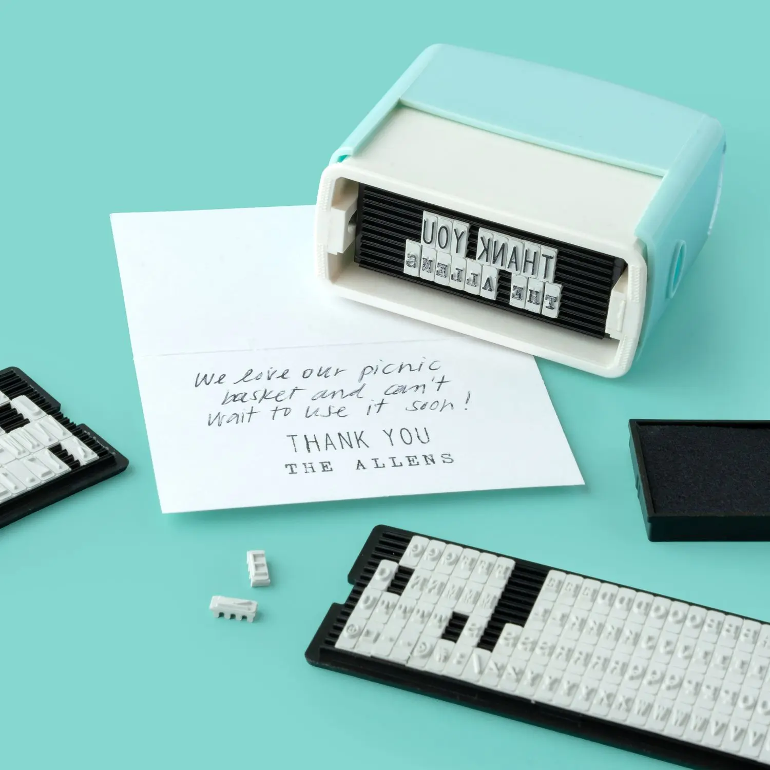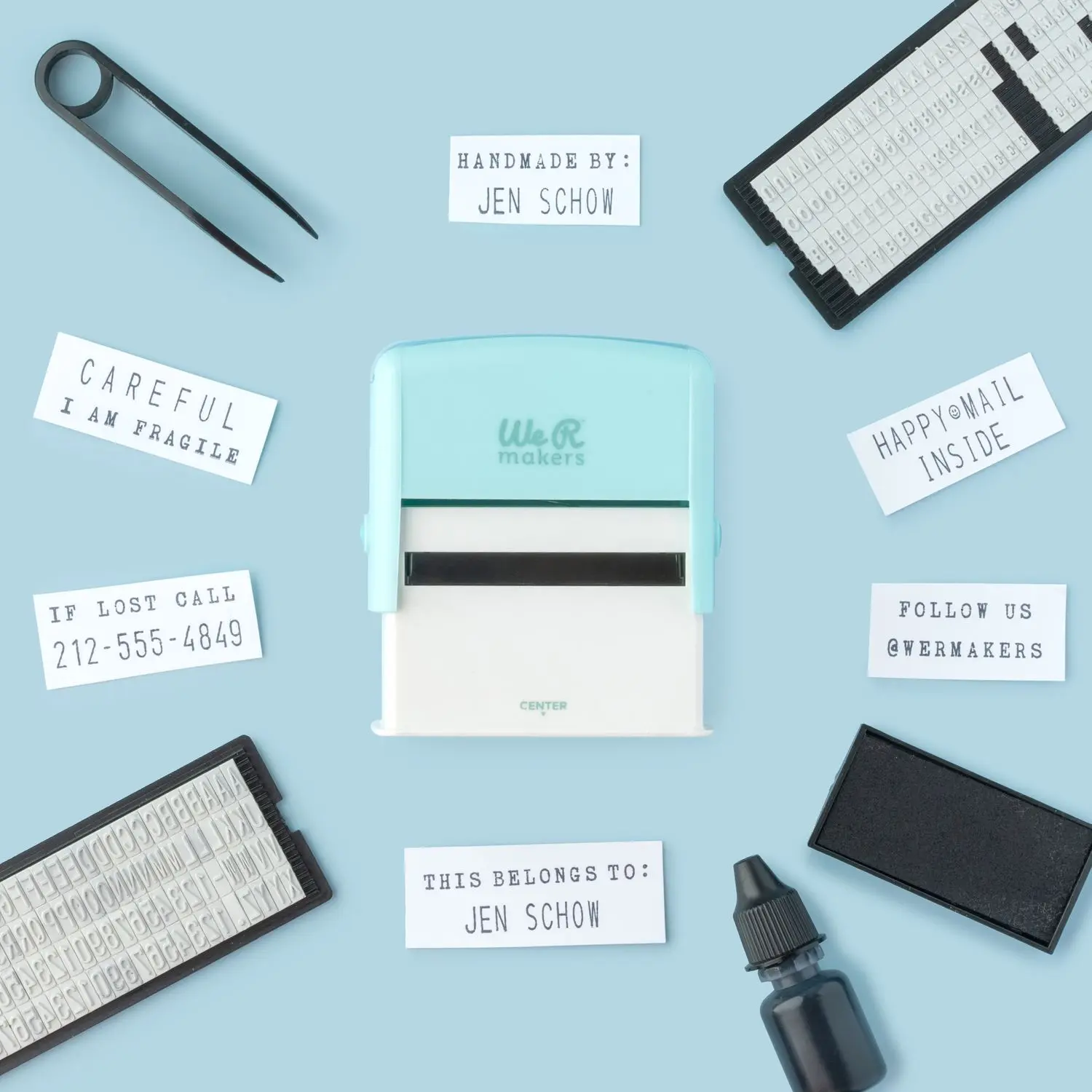 ¡Con este kit de sellos DIY, puedes crear sellos personalizados y únicos para cada ocasión! Crea hasta 2 líneas de texto. Estampar sobre una variedad de materiales. Incluye estampador, 2 juegos completos de alfabetos de caracteres, pinzas, botella de recarga de tinta y almohadilla de tinta.