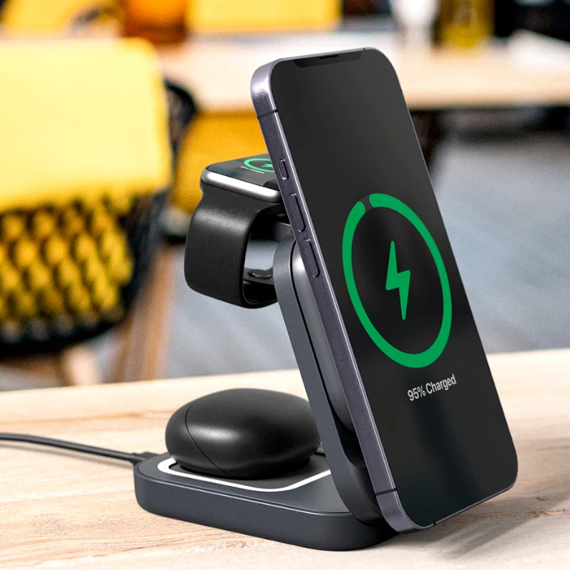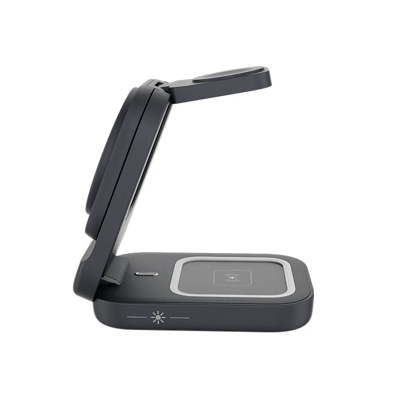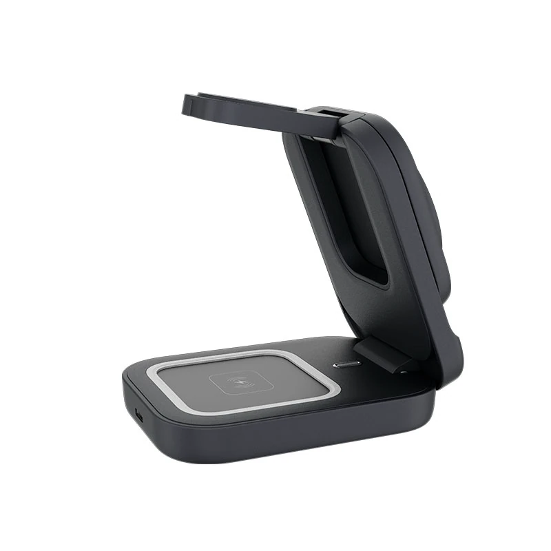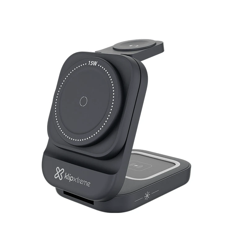 Presentamos el soporte plegable de carga inalámbrica 3 en 1 de KlipXtreme: un nuevo estándar para tus necesidades tecnológicas. Carga sin esfuerzo tu teléfono inteligente, reloj inteligente y audífonos simultáneamente, manteniendo tus dispositivos organizados y cargados. Su diseño elegante y plegable garantiza la portabilidad, lo que lo hace perfecto para el hogar o para viajar. Con capacidades de carga rápida y compatibilidad con varios dispositivos, mantenerse conectado nunca ha sido tan fácil.