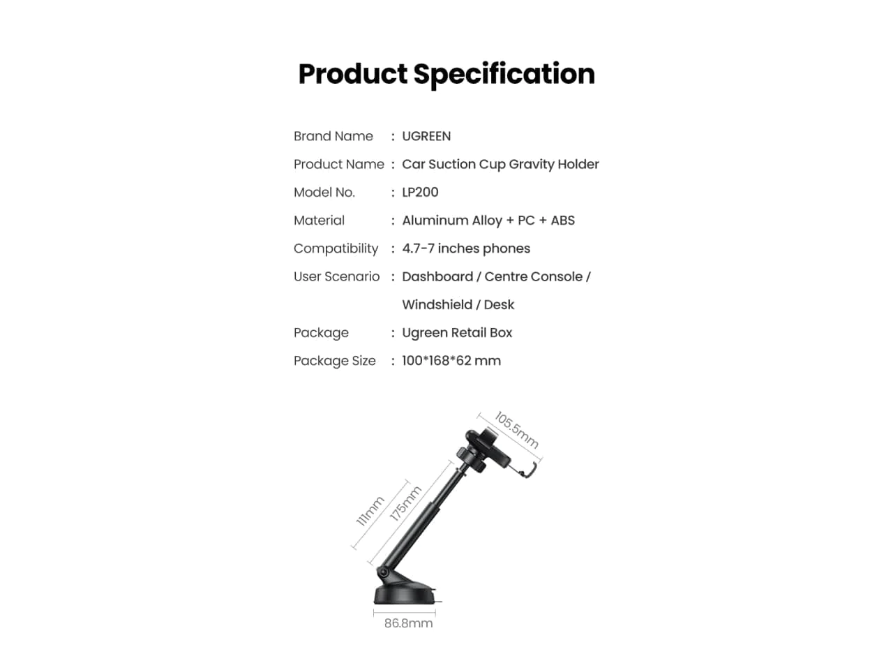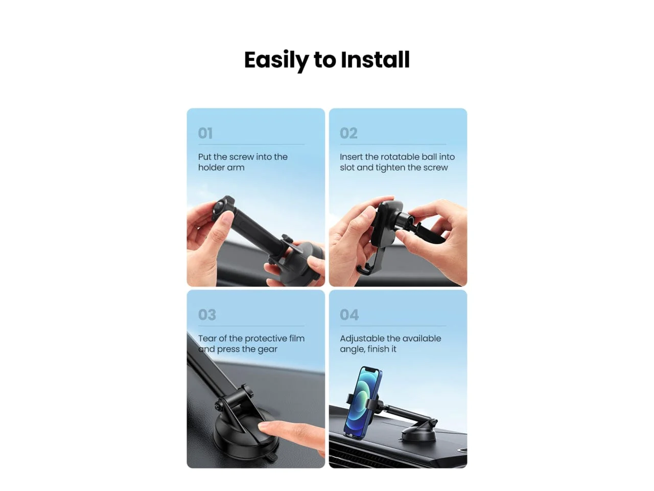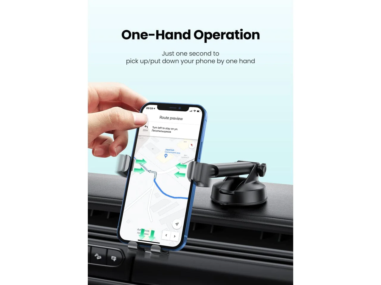 Con un diseño de vinculación por gravedad, este soporte para teléfono para automóvil simplemente puede bloquear su teléfono en su lugar. Operación con una sola mano para colocar su teléfono de forma segura contra el soporte.