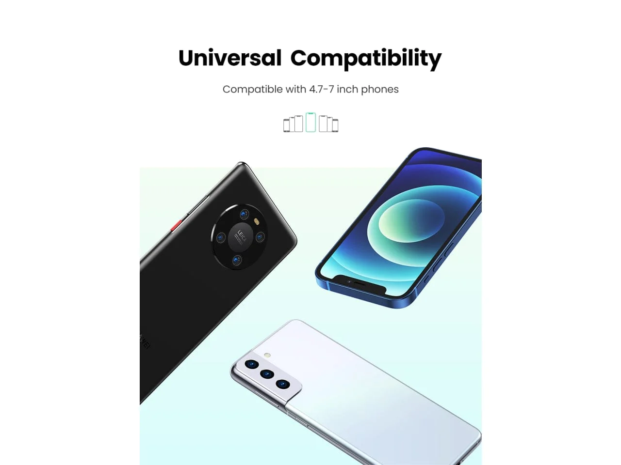La base de gravedad del soporte para teléfono del automóvil se puede extender para adaptarse a los teléfonos inteligentes populares con un tamaño de pantalla que va desde 4.7 «a Max 7».