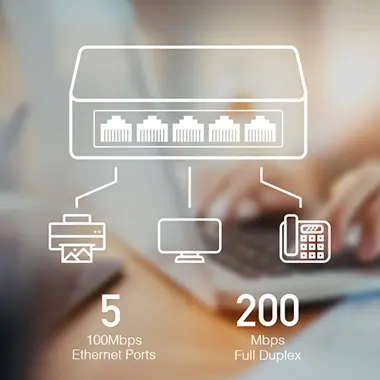 • 5 puertos RJ45 de negociación automática de 10/100 Mbps