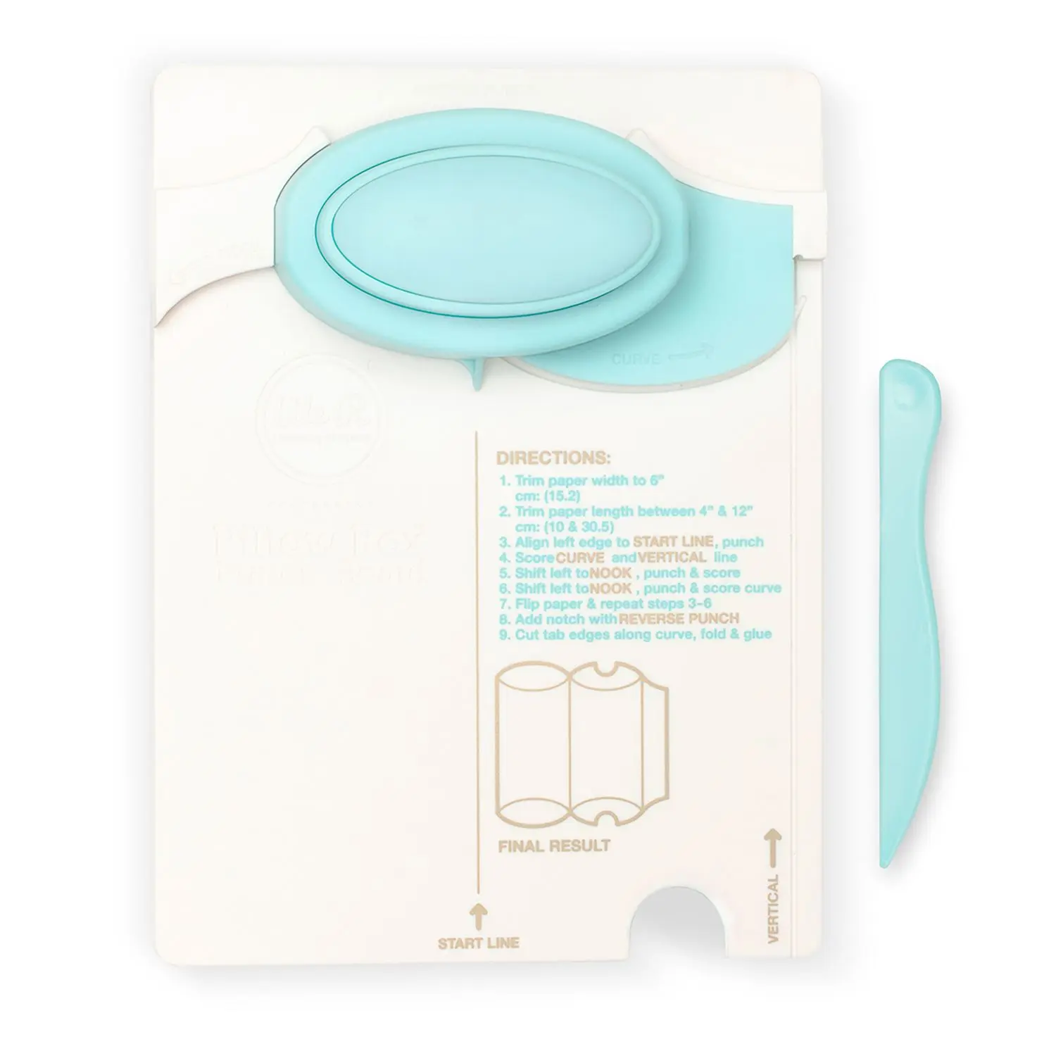 ¡Utiliza cualquier papel para personalizar cajas tipo almohada en varias longitudes! Cree pestañas de pliegue y muesca para el pulgar con el perforador bidireccional. Este paquete contiene una tabla perforadora tipo almohada We R Memory Keepers, una tabla de puntuación de 7×5-3/4 pulgadas, un perforador bidireccional, una herramienta de puntuación y una guía del usuario. Importado.