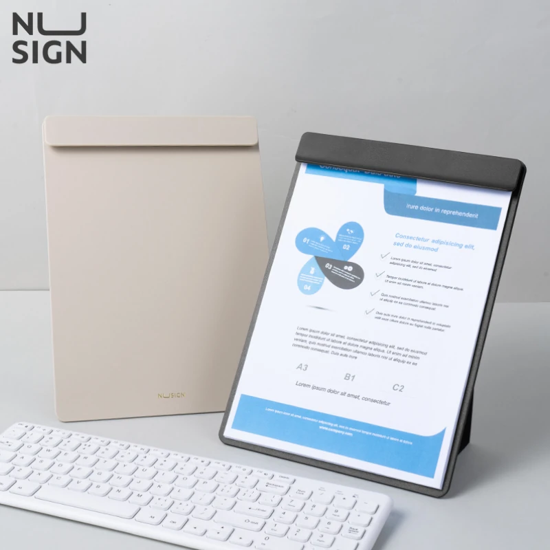 Organiza y presenta tus documentos con estilo gracias a este tablero A4 de la línea Nusign. Su diseño minimalista y materiales resistentes lo hacen práctico y elegante.