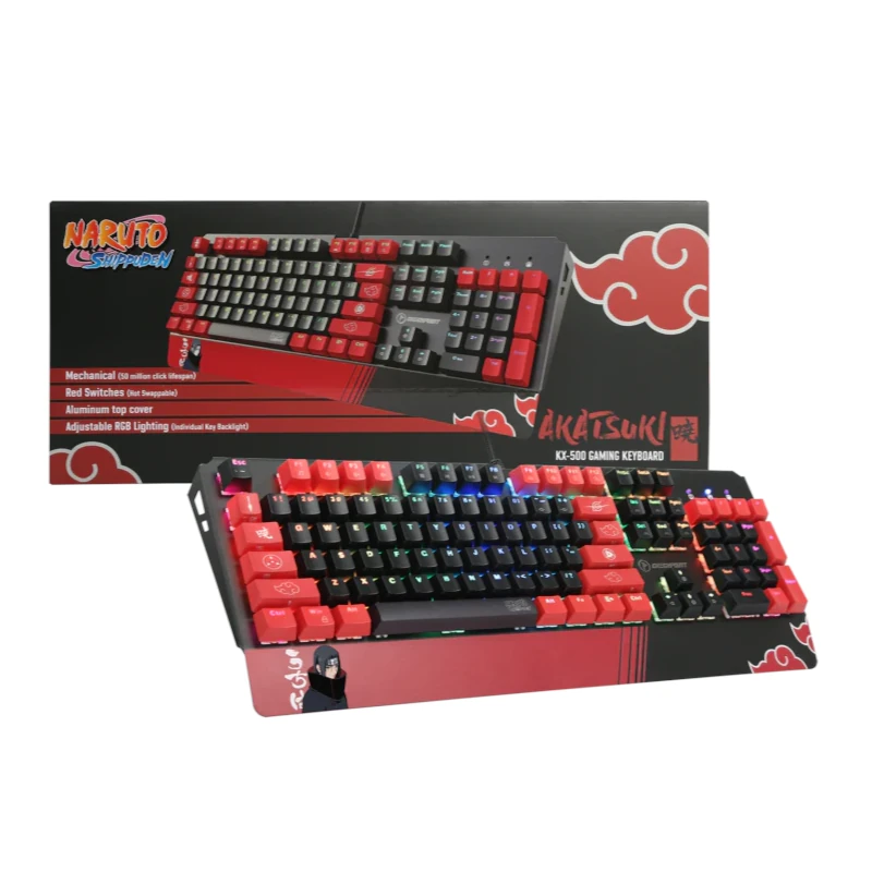 Teclado Checkpoint Gaming Naruto Akatzuki Usb Neg-Roj Rgb Full Kx-500 Mecanico