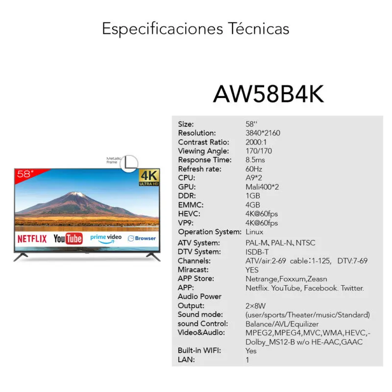 Televisor Aiwa Led 58″ 4K Smart UHD