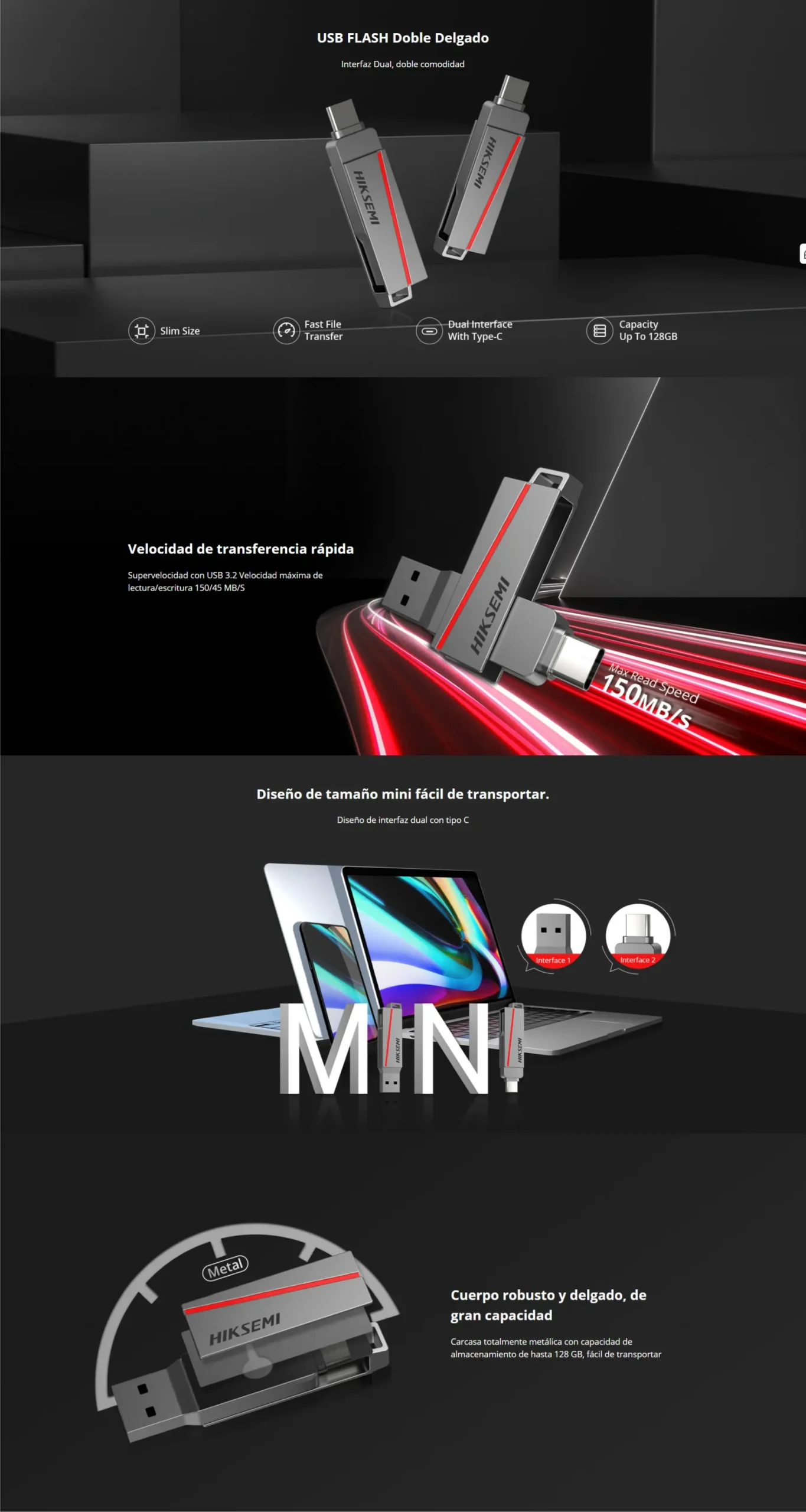 La unidad flash USB de la serie Dual Slim es un dispositivo de almacenamiento de datos de uso general y se puede utilizar con cables de datos Hikvision OTG para conectar con dispositivos que admiten funciones OTG como teléfonos Android para lograr conveniente y rápido transmisión de datos. También podemos personalizar diseños como obsequios/funciones para clientes. La interfaz puede admitir USB2.0/3.0/3.1/3.2 para cumplir las necesidades de los clientes para diferentes velocidades interfaces.