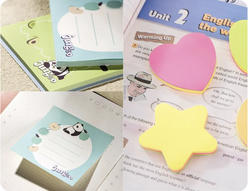 Las notas adhesivas son perfectas para recordatorios rápidos o señalizar documentos importantes, disponibles en diferentes tamaños y colores. Los push pins son ideales para fijar notas en tableros de corcho y mantener visibles tareas y recordatorios. Las grapadoras son un básico para mantener documentos juntos y organizados de forma eficiente.
